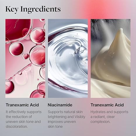 This cream is enriched with Tranexamic Acid, Niacinamide, Magnesium Ascorbyl Phosphate, and Ascorbic Acid to support overall skin health, refine texture, and promote a refreshed, balanced look.